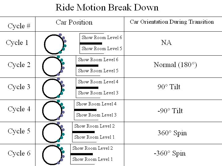 The Great Contraption is essentially an Egg Scrambler but to the nth degree the ferriss wheel and gyro scope componets are to add a number of various diffent cycles that would not be possible other wise. the indivisual cars would titlt between 85 and -85 degreees in the x-direction and be able to spin 360 degrees in the xy-plane the ferris wheel componet then allows the cars to move in a cirular motion in the xz plane 360 degrees, this ride woudl have a very large ride capcity and would be a next generation flat ride. I can not say exactly what the acutal motions would be cause I do not know enough about the disorintation factors of a ride like this, but I amagine that with limited motion from the car components this ride with give guests very unique thrills, for instance one move that could be done, is while the egg scrabler is in a typilcal cycle the cars coudl tilt forward 90 degrees and the wheel coudl make one rotation, the effect woudl be falling forward toward the ground the moving back wards and up away from the ground during a egg scrambler cycle. This ride woudl be somewhat intense but nothing like Disney has ever offered before.