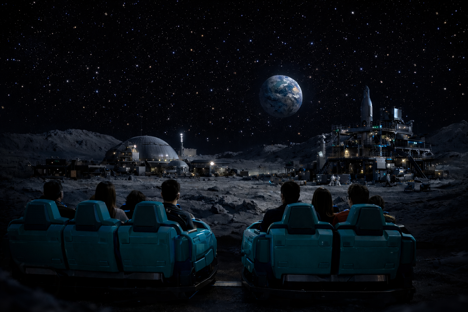 Hey thanks. I wonder if there was ever concept art for the moon scene and it'd be so cool to see the peppers ghost figures as they are now. I adore this ride and was so excited to see the space station cylinder.-Ascent and Phoenician fog machines