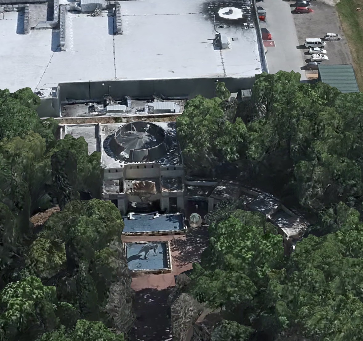 Plus it looks like they are trying to keep as many of the mature trees and plants as possible. Will really help the look from day one.It's nice that the building was already designed with roof-portions meant for trees and plants to hide the huge show building. A natural way of making the temple look overgrown as well.