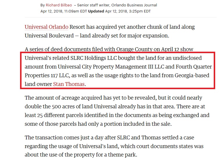 After years of speculation, Universal Studios has now secured the additional property that crisscrossed their southern property. The purchase also includes the long sought after deed rights that had previously blocked Universal from building a theme park on the property.